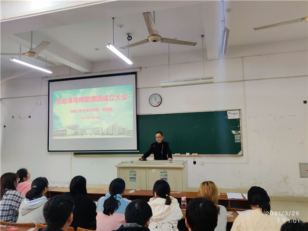 为配合学院思政课专题化教学改革,协调思政课专题教师与班级之间的交流与沟通,做好大学生思想政治工作的引领,3月26日,思政部在南区教学楼北104教室举行2020级思想政治理论课教学导师助理团成立大会,2020级各班级的助理员参加了会议,会议由思政部基础课教研室主任高峰主持。