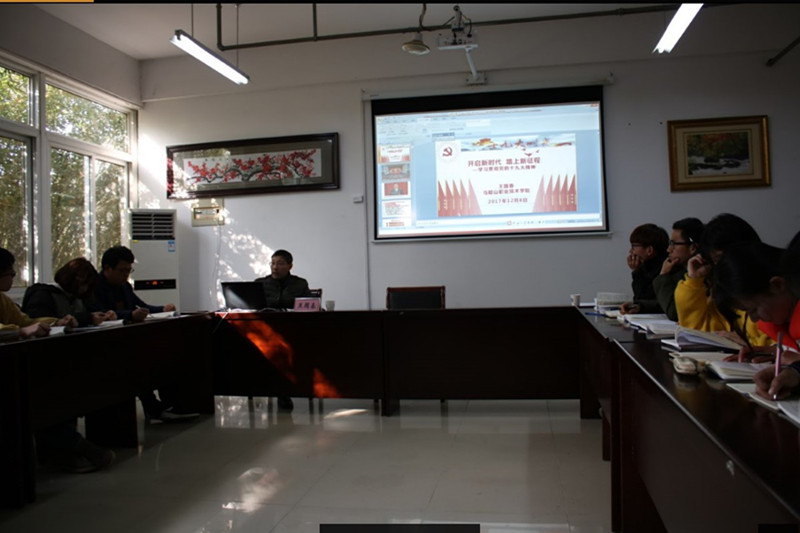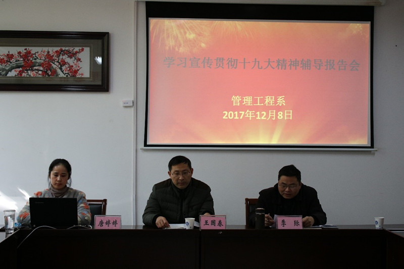 管理工程系学习宣传党的十九大精神学生小组成员、辅导员参加了报告会,管工系总支书记季际主持报告会。