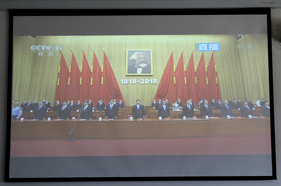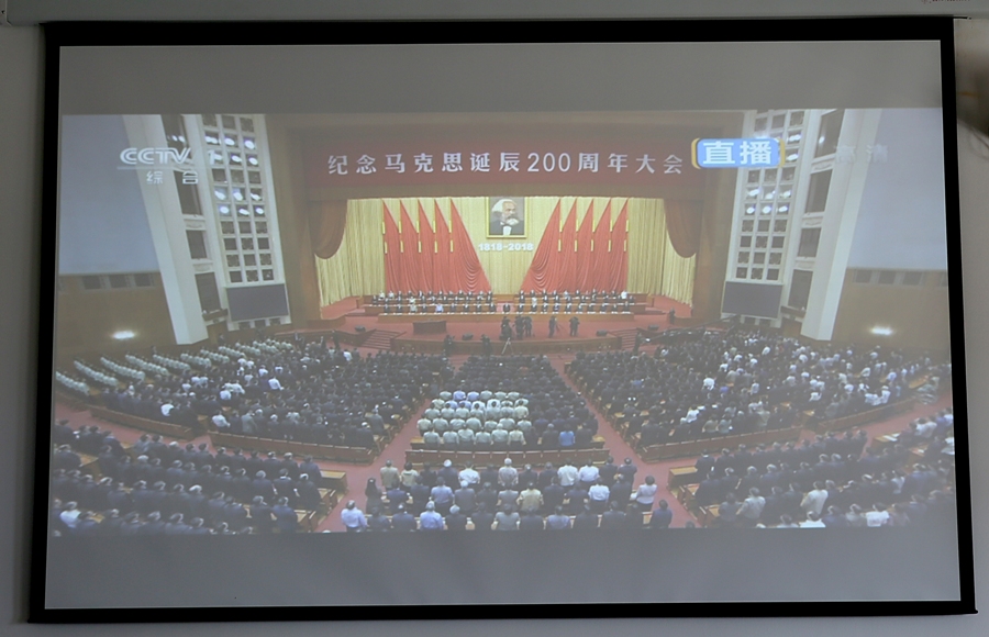 5月4日上午10:00,学院在视频会议室集中收看纪念马克思诞辰200周年大会实况直播,认真聆听习近平总书记在纪念大会上的重要讲话。学院党委书记邵许、院长姚国成,副院长刘淑凤、吴彩林,党委委员办公室主任刘恒出席会议,各系总支书记和直属支部书记,思政部全体教师和学生代表一同观看直播。