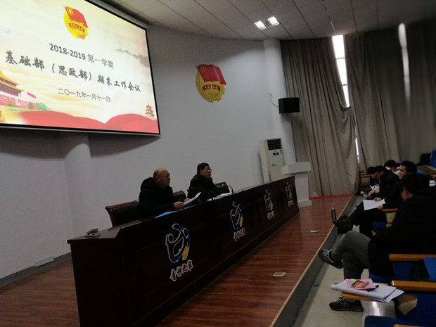 1月11日下午,思政部在图书馆报告厅召开期末教学和党建工作会议,思政部主任王国春、书记孙明春和全体教师参加了会议,会议由王国春主持。