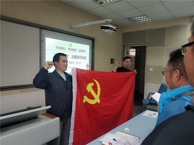 活动伊始,喻礼才老师重读了他的入党志愿,在入党志愿中回忆入党的经历和初心。在场党员深受感染,纷纷回忆起自己入党时的初心。随后,马小林带领全体党员面对党旗,庄严宣誓,重温入党誓词。