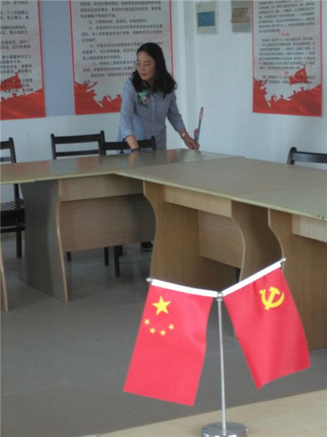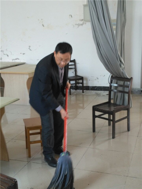 党课之前,首先开展了“两个一”活动,全体与会党员志愿参加基础部会议室大扫除活动,王国春和孙明春率先垂范,身体力行,其他党员纷纷响应,擦窗、抹桌、拖地,欢声笑语中,会议室窗明几净、焕然一新。