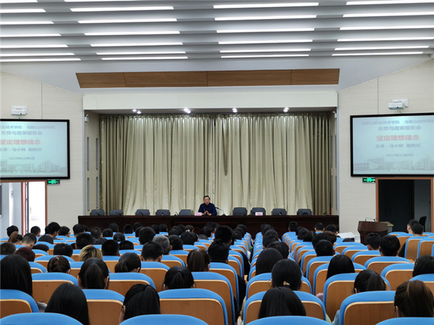 为进一步推进“不忘初心、牢记使命”主题教育深入开展,贯彻落实习近平总书记在学校思想政治理论课教师座谈会重要讲话精神和中央两办有关文件精神,11月6日下午,党委委员、副院长马小林在行政楼报告厅为机械工程系和医学护理系400余名同学主讲了一场形势与政策报告会,报告会的主题是“坚定理想信念”。本次报告会不仅是一堂思政专题课,也是一堂专题党课,医学护理系和思政部党员教师共同聆听了这堂精彩的报告会,报告会由思政部主任王国春主持。