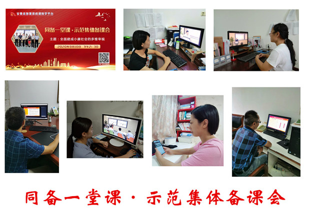 为深入推进我校思政课教师队伍建设,切实提高我校思政课教学水平,根据省教育厅工作安排,9月10日下午,思政部组织思政课专兼职教师通过安徽省智慧思政课教学平台,收看“同备一堂课·示范集体备课会”第一期直播。
