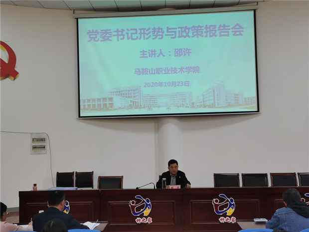 报告会以习近平总书记视察马鞍山,对马鞍山的定位作为切入点,向广大师生传达了市委九届十二次全会精神,要求认真贯彻强化“两个坚持”实现“两个更大”的目标要求,并从“四高目标”、“五大提升行动”、“四项政治保障”和“四项组织保障”四个方面为大家深刻阐明了习近平总书记视察安徽重要讲话指示精神和市委全会精神。最后,邵许勉励同学们认认真真地学习,不断地提高自己,要求教师在教书育人的前提下,把本职工作做好,为努力建成全省技能型高水平大学,为我市奋力打造安徽的“杭嘉湖”、长三角的“白菜心”,为全力建设“生态福地、智造名城”升级版作出应有贡献。