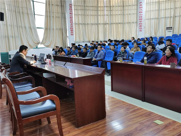 11月13日下午,学院党委书记邵许以《中国共产党十九届五中全会精神解读》为主题,在南区图书馆报告厅为机关第三党支部、思政部全体党员老师以及2020级部分新生代表上了一堂富含政治性、思想性、教育性的专题党课。党员委员、副院长吴彩林以普通党员身份参加活动,专题党课由思政部党支部书记王国春主持。