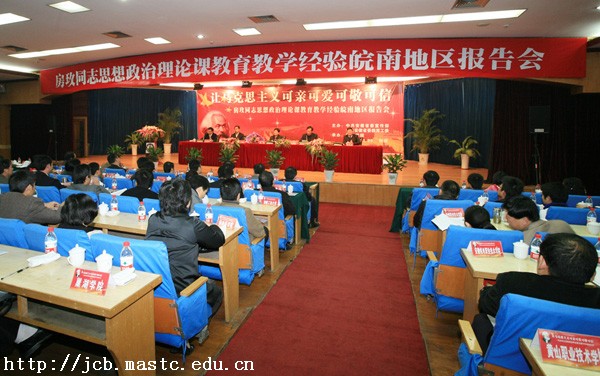 11月30日上午,由中共安徽省委宣传部、中共安徽省委教育工委主办,铜陵学院承办的房玫同志思想政治理论课教育教学经验皖南地区报告会在铜陵市五松山宾馆隆重召开。思政部王国春主任带领杨承舟、高峰老师参加报告会。来自皖南地区30余所高校的领导、思政课教师和铜陵学院部分师生代表参加了报告会。省教育厅思政处副处长王后林主持会议。