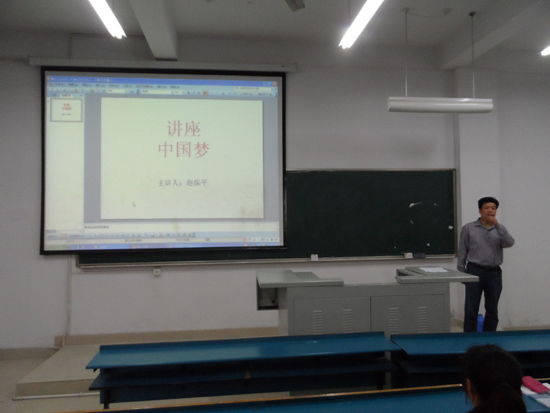 为深入学习宣传贯彻党的十八大精神和十二届人大一次会议精神,按照安徽省教育厅“我的中国梦”主题教育活动的具体要求,进一步加深对“中国梦”的理解,开展中国特色社会主义宣传教育,10月30日下午4:00,思政部特邀安徽工业大学宣传部赵保平部长在教学楼北楼402为大一学生开展了以“中国梦”为主题的讲座。