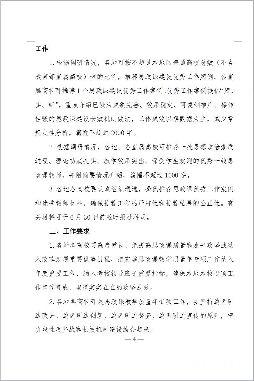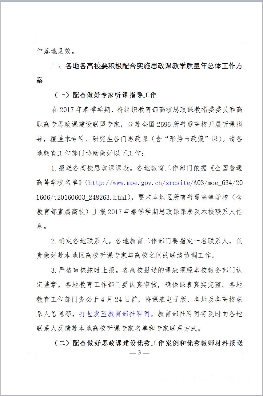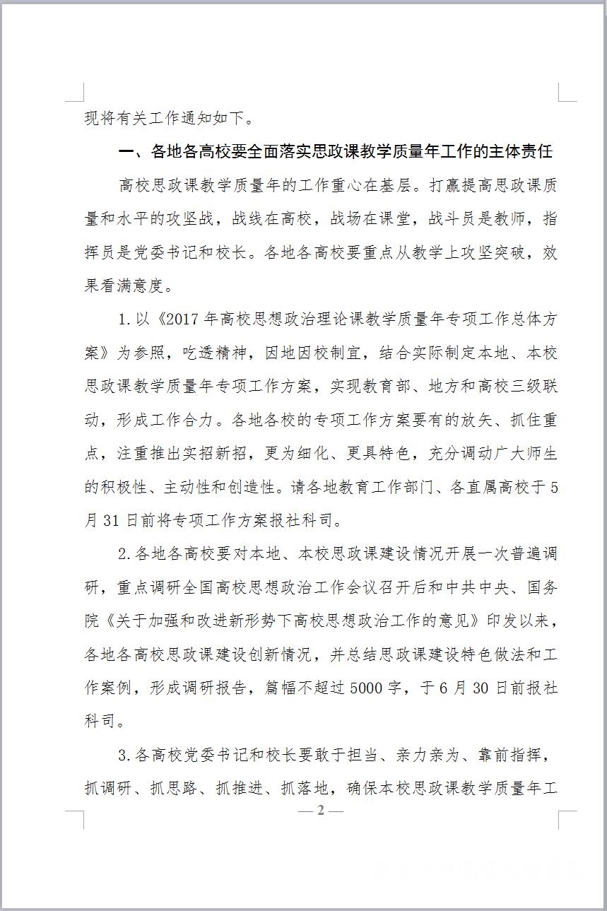 教社科厅函[2017]15号 教育部办公厅关于开展2017年高校思想政治理论课教学质量年专项工作的通知