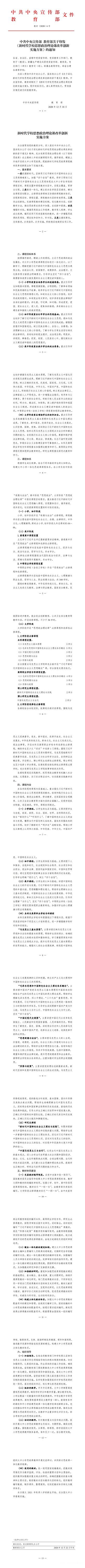 中共中央宣传部 教育部关于印发 《新时代学校思想政治理论课改革创新实施方案》的通知
