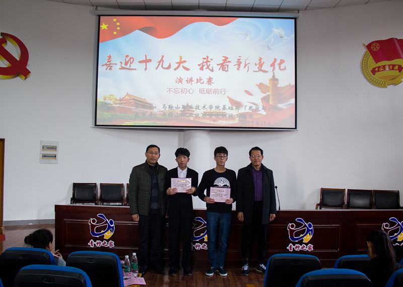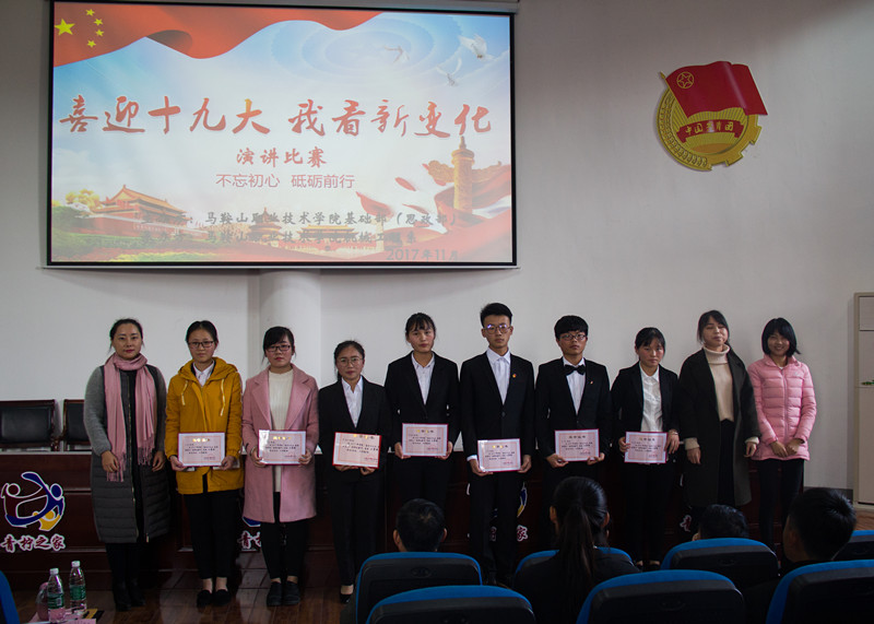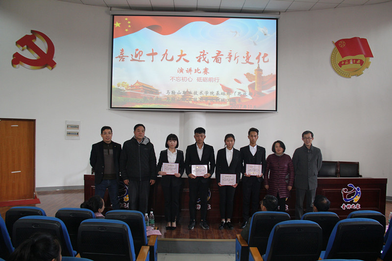 11月23日,思政部主办、机械工程系学生会承办的院“喜迎十九大 我看新变化”主题演讲比赛在南区报告厅拉开帷幕。思政部王国春主任和部分思政、语文教师担任评委并为获奖选手颁奖。
