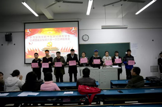 成立仪式后各小组学生宣讲代表作第一次宣讲报告,思政部老师和学生宣讲代表进行了交流探讨,进一步完善了宣讲内容和方法,为下一步开展宣讲做好了准备。