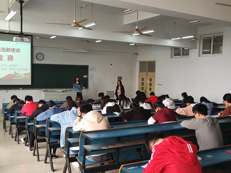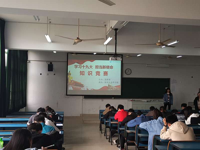 为进一步推动十九大精神的学习贯彻,提高大学生的思想认识,深化理想信念教育,推进习近平新时代中国特色社会主义思想进课堂、进头脑,3月30日,学院思政部在教学楼北406教室举行“学习十九大,担当新使命”为主题的2018年学习宣传贯彻党的十九大精神知识竞赛活动。