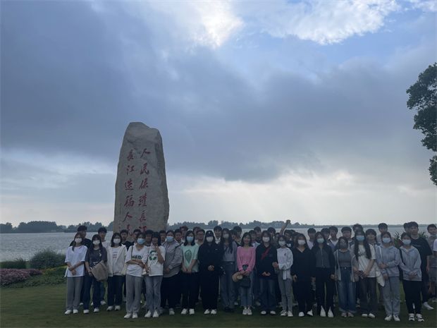 在薛家洼生态园,思政部周朋老师通过两块竖立在江边的展板,向同学们详细介绍了长江马鞍山段东岸整治历程和长江禁捕退捕的工作成效,通过数字举证、图片对比引导同学们深切感受在习近平生态文明思想的指引下马鞍山的实践成果。随后,同学们行进在滨江生态湿地(杨树林)中的木质栈道上,并从物种习性、特点和生态作用等方面了解生态湿地,进一步理解环境整治和生态修复的深远意义。